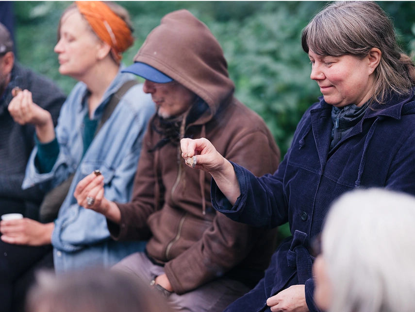 The bonfire gathering, accompanied by herbal tea, served as a preparatory passage before entering the mountain’s interior, where bacterial processes transform waste into water. This collaboration foregrounded embodied knowledge and ecological awareness, aligning with the Academy’s ethos of rhythm-based inquiry and site-responsive practice.