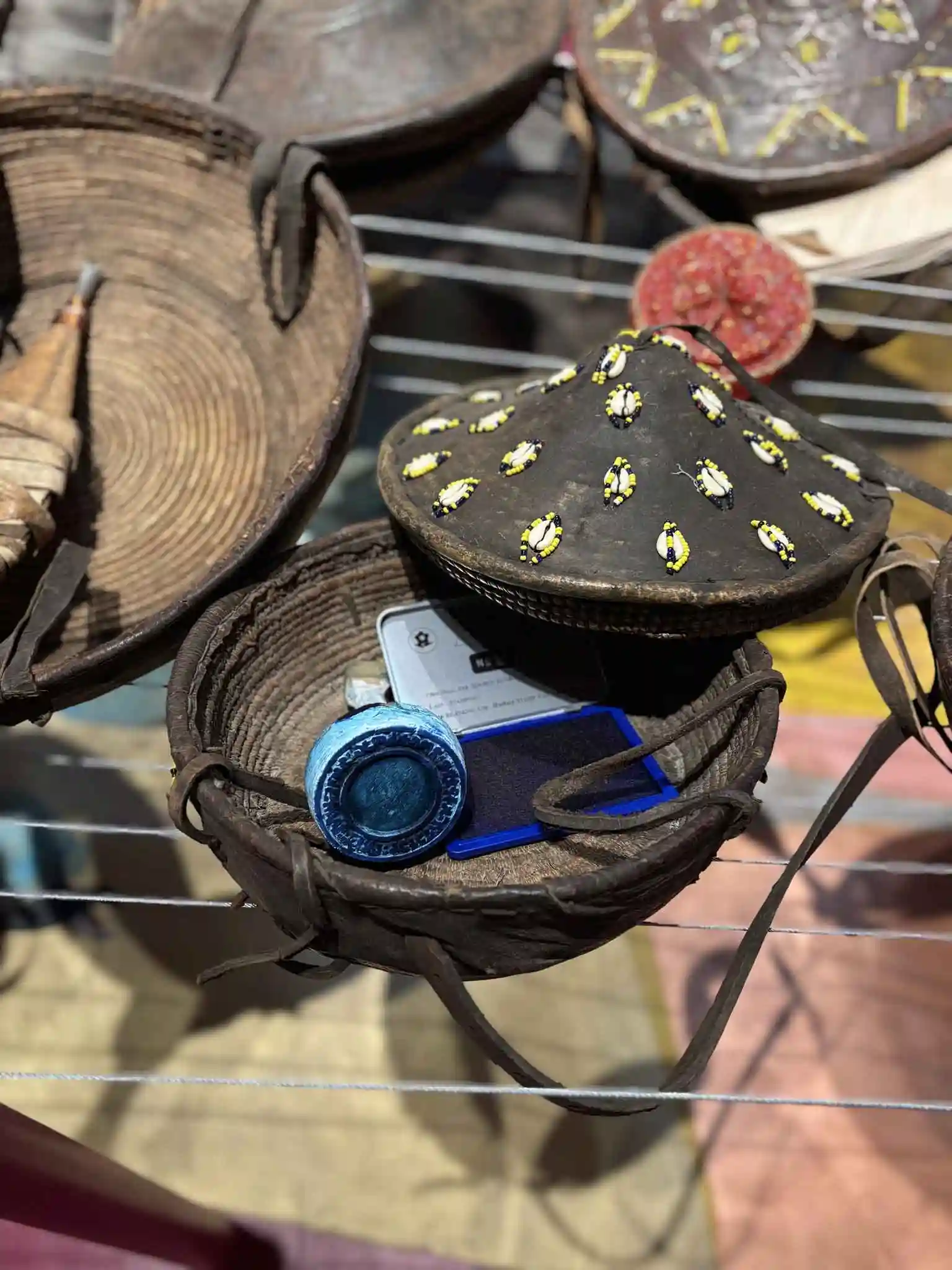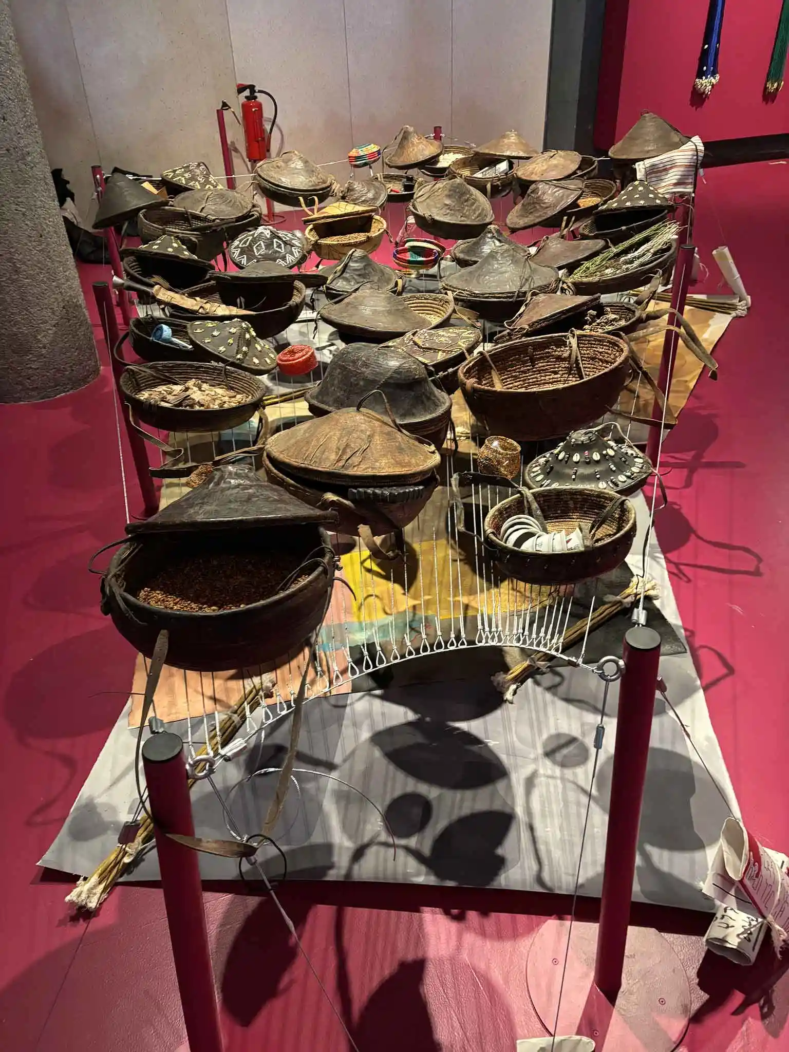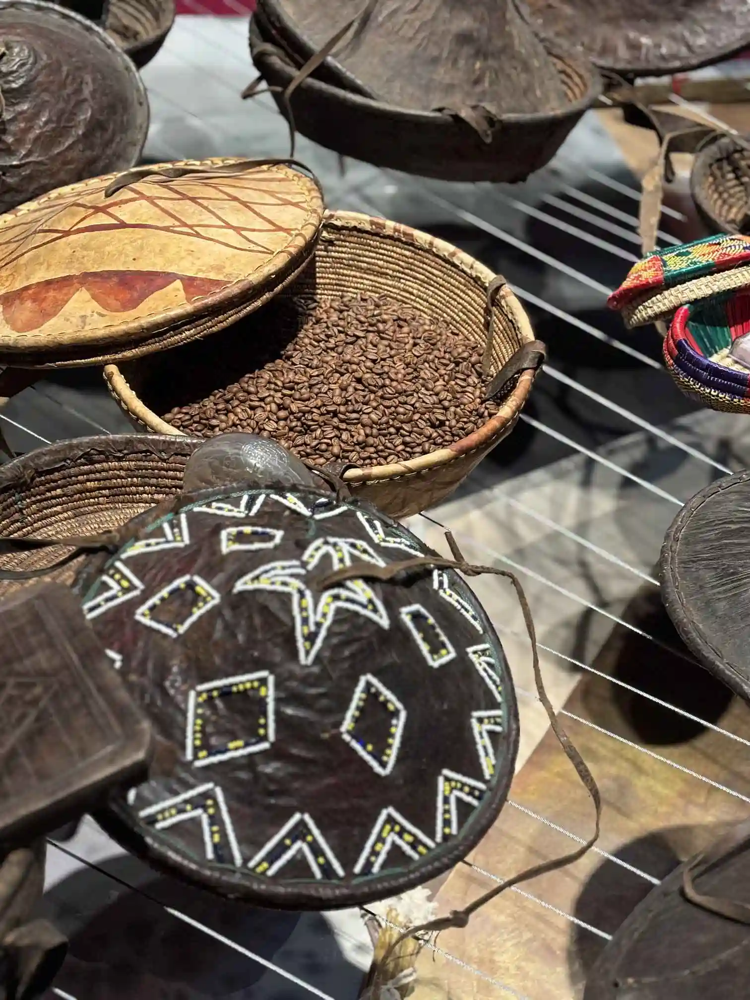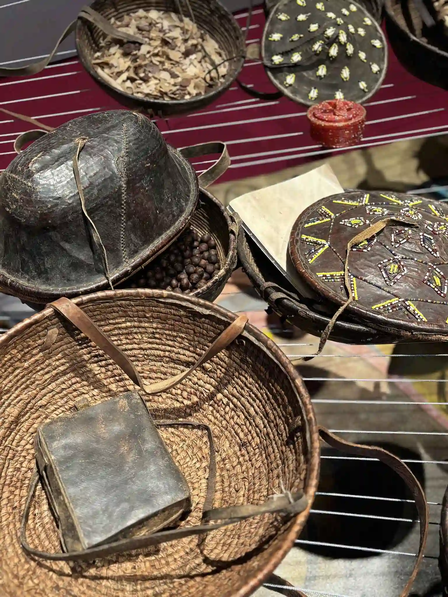 The installation consists of thirty-six items arranged in and around Ageligil and Muday, traditional woven and leather-covered containers used for food, clothing, and manuscripts. These objects, part Ethiopian heritage, part European encounter, form a layered meditation on what we take, leave behind, or transform through travel. By intertwining historical reconstruction with contemporary reflection, Eventual Return: What to Take Back examines the ethics of cultural exchange and the responsibilities of being both guest and messenger across worlds.
