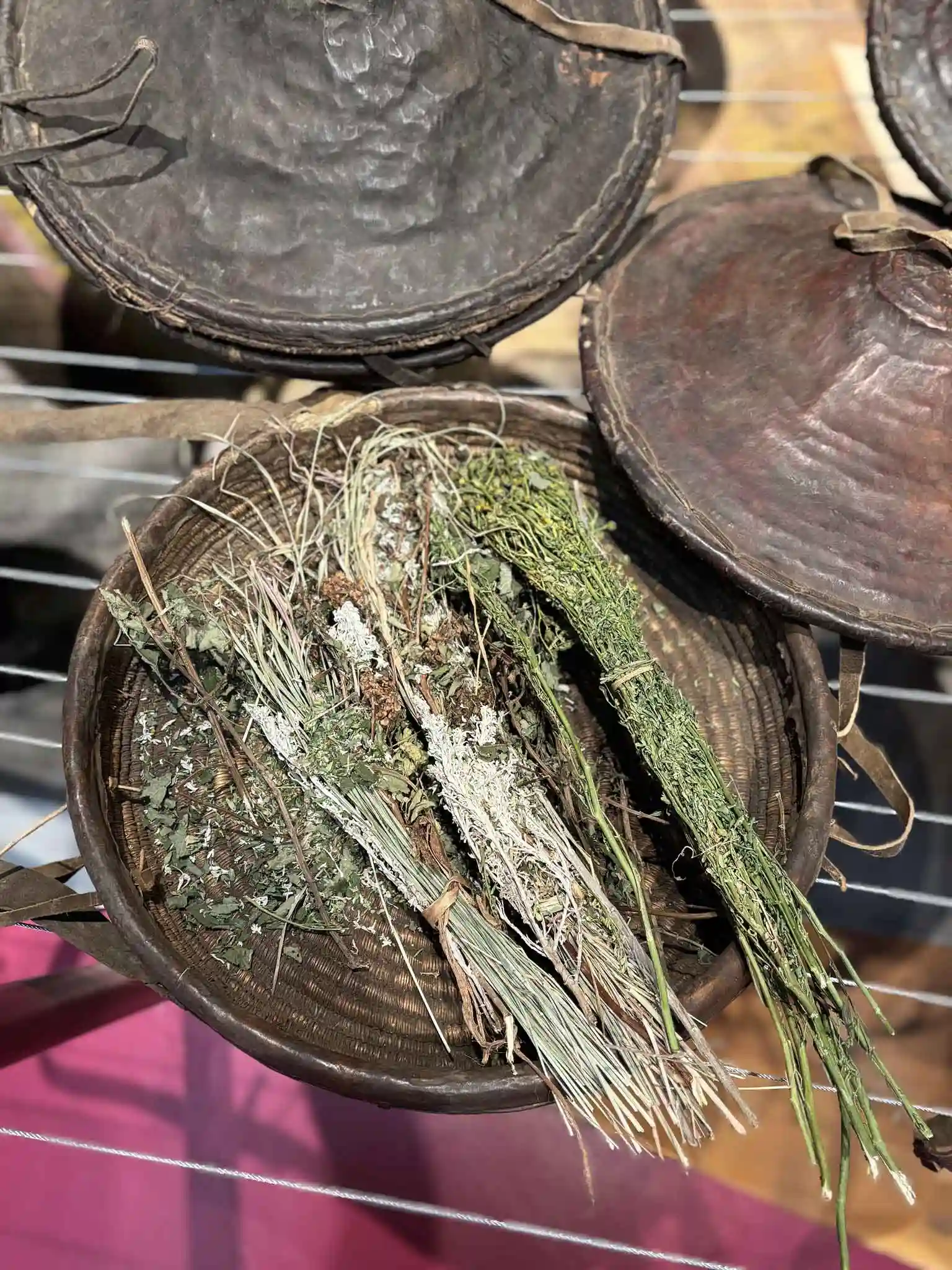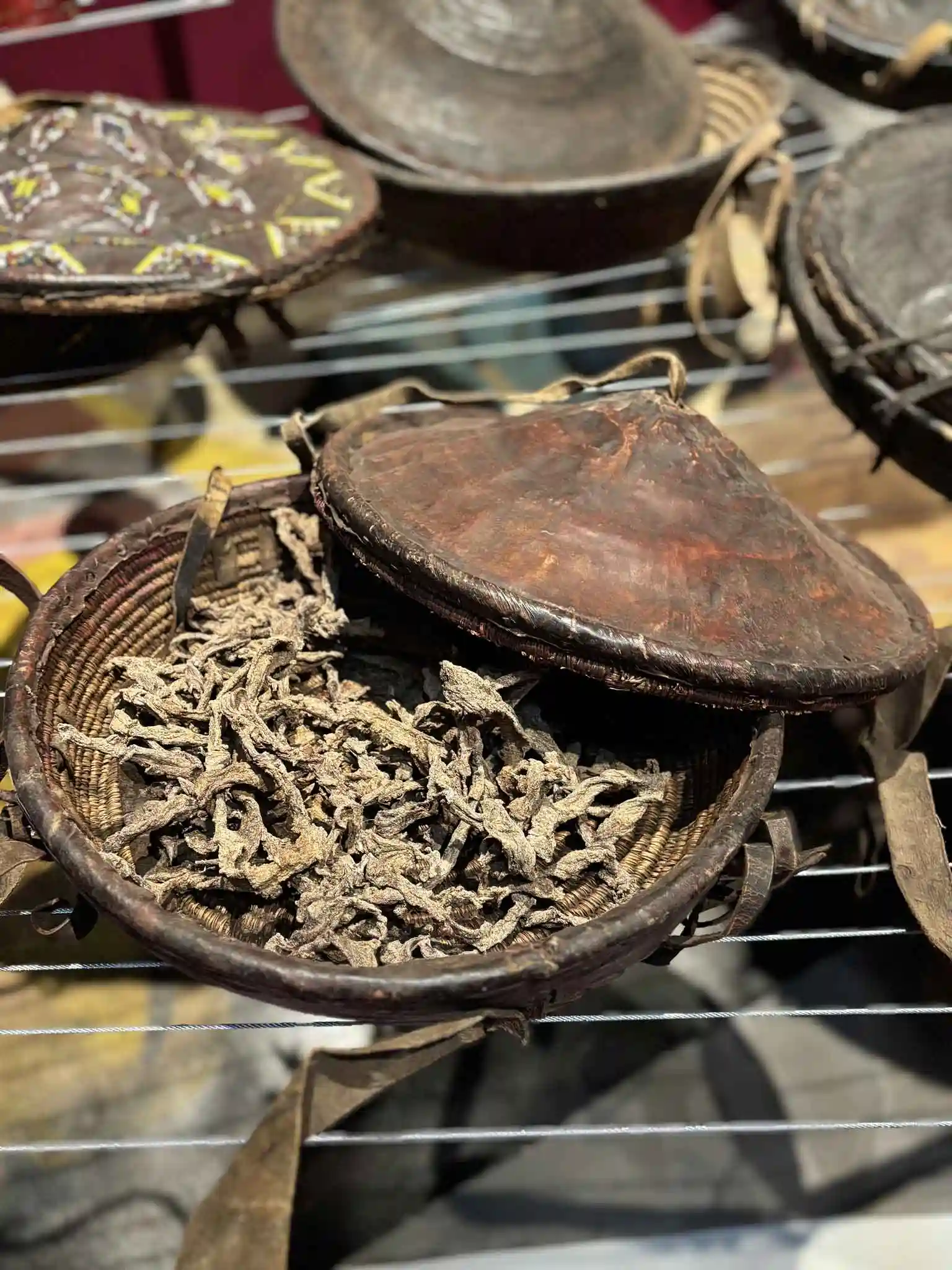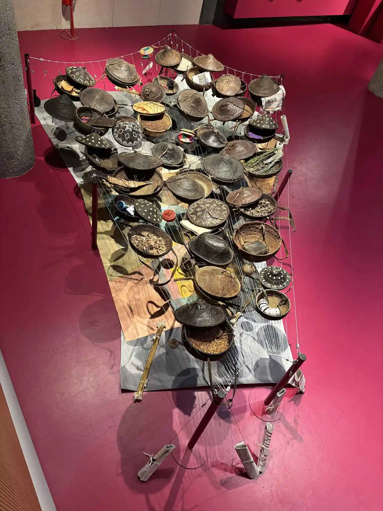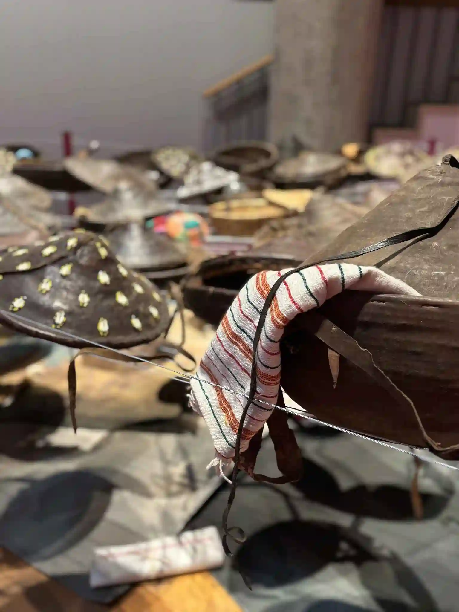 The installation consists of thirty-six items arranged in and around Ageligil and Muday, traditional woven and leather-covered containers used for food, clothing, and manuscripts. These objects, part Ethiopian heritage, part European encounter, form a layered meditation on what we take, leave behind, or transform through travel. By intertwining historical reconstruction with contemporary reflection, Eventual Return: What to Take Back examines the ethics of cultural exchange and the responsibilities of being both guest and messenger across worlds.