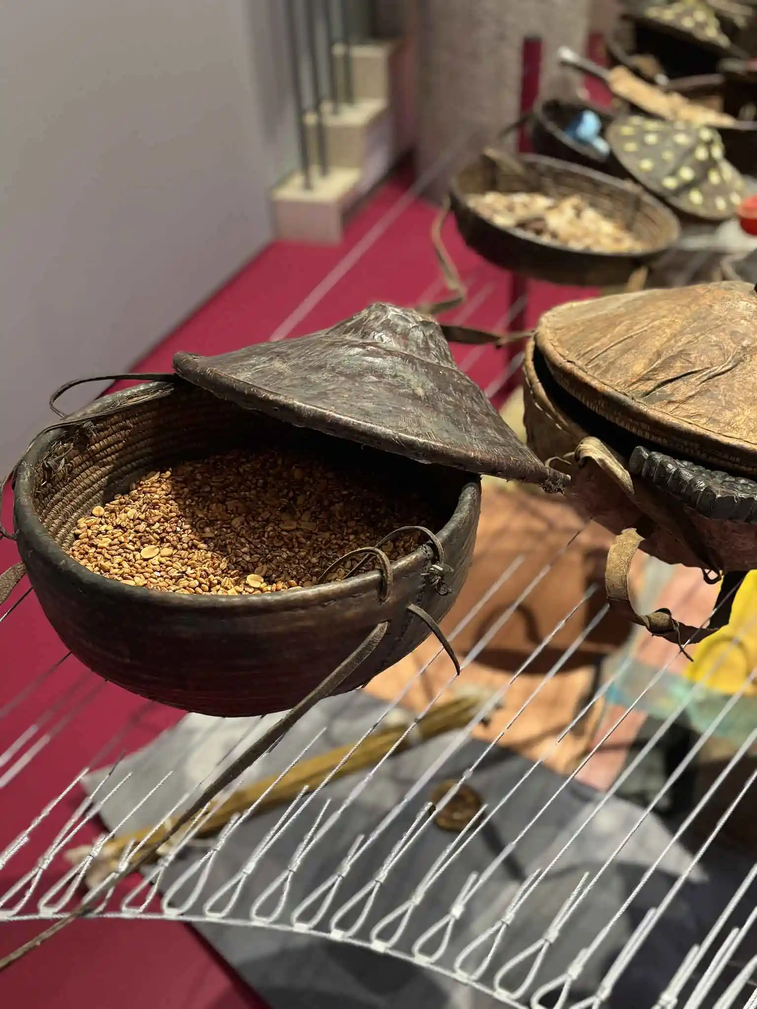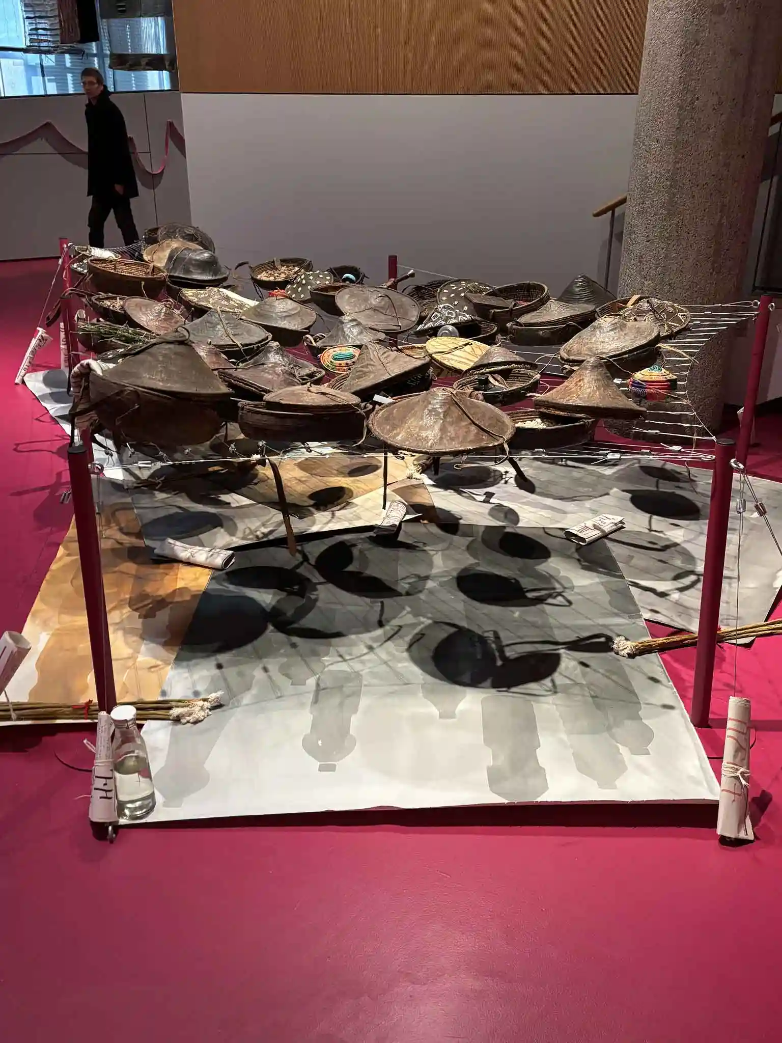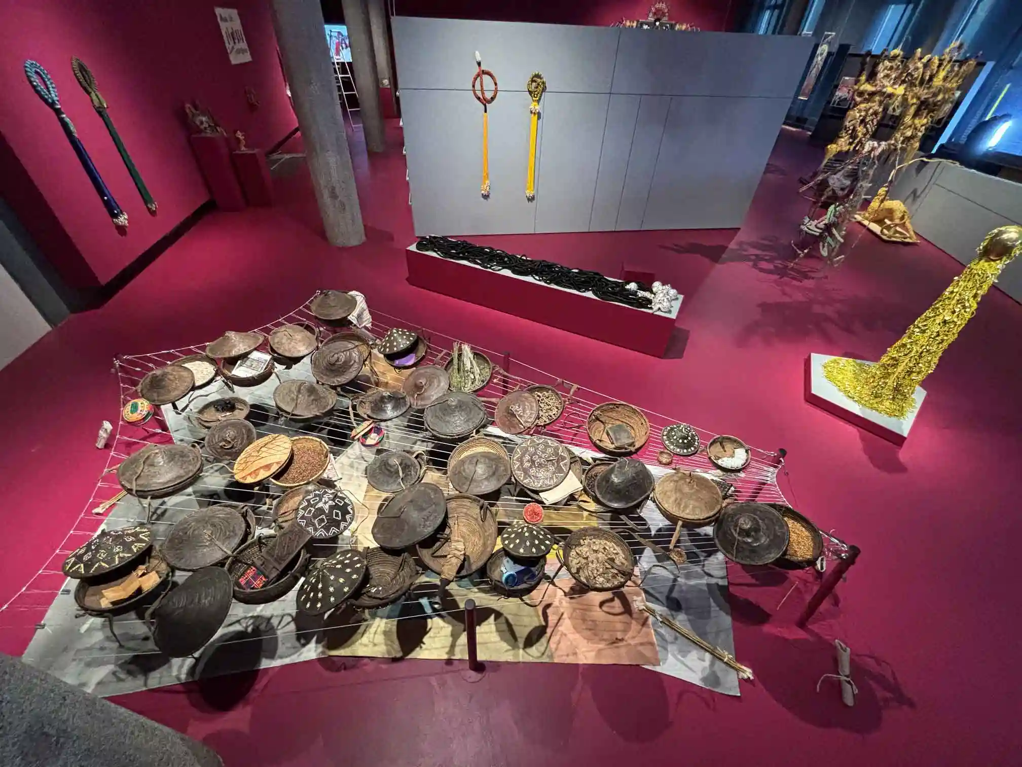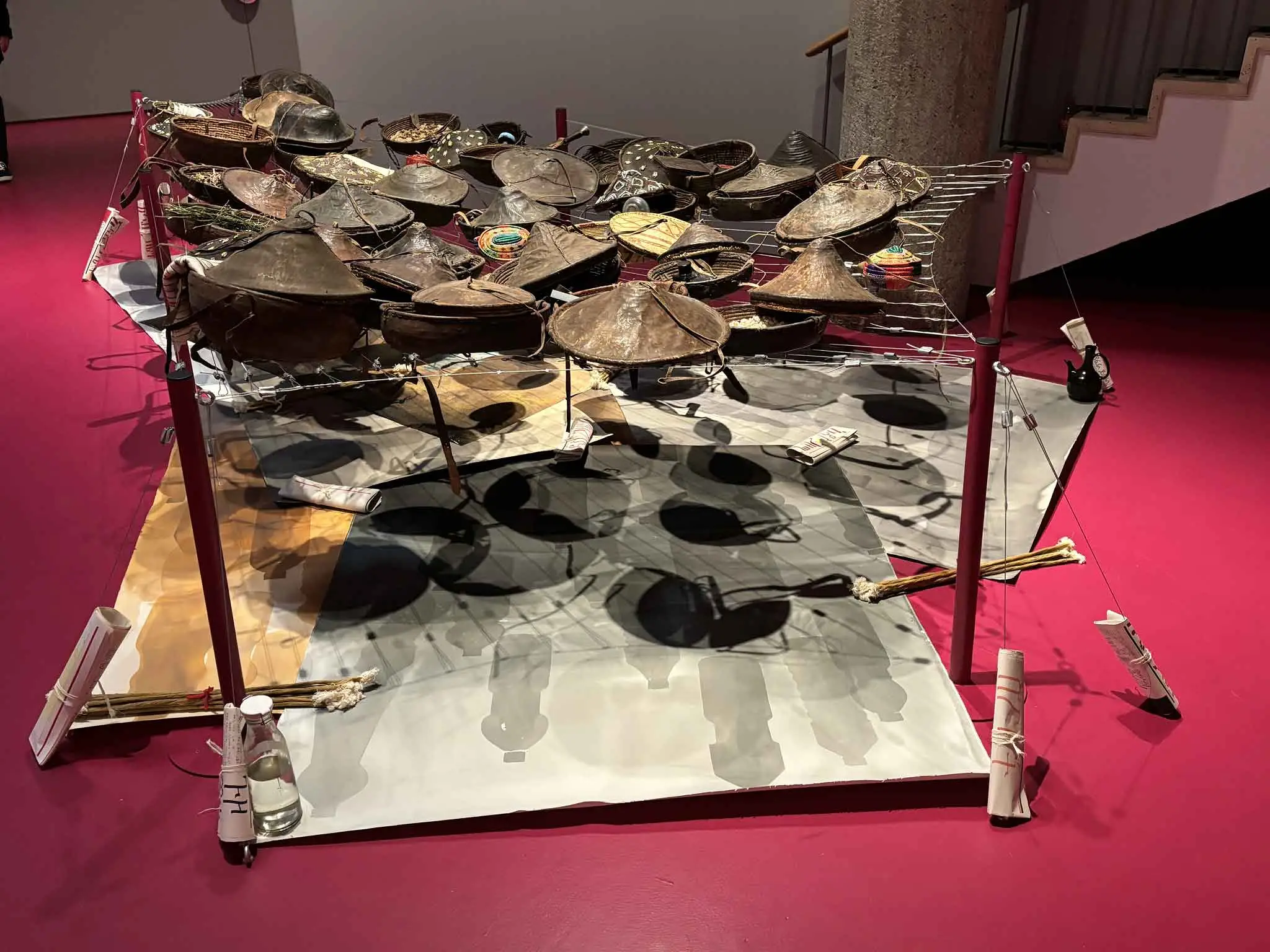 The installation consists of thirty-six items arranged in and around Ageligil and Muday, traditional woven and leather-covered containers used for food, clothing, and manuscripts. These objects, part Ethiopian heritage, part European encounter, form a layered meditation on what we take, leave behind, or transform through travel. By intertwining historical reconstruction with contemporary reflection, Eventual Return: What to Take Back examines the ethics of cultural exchange and the responsibilities of being both guest and messenger across worlds.