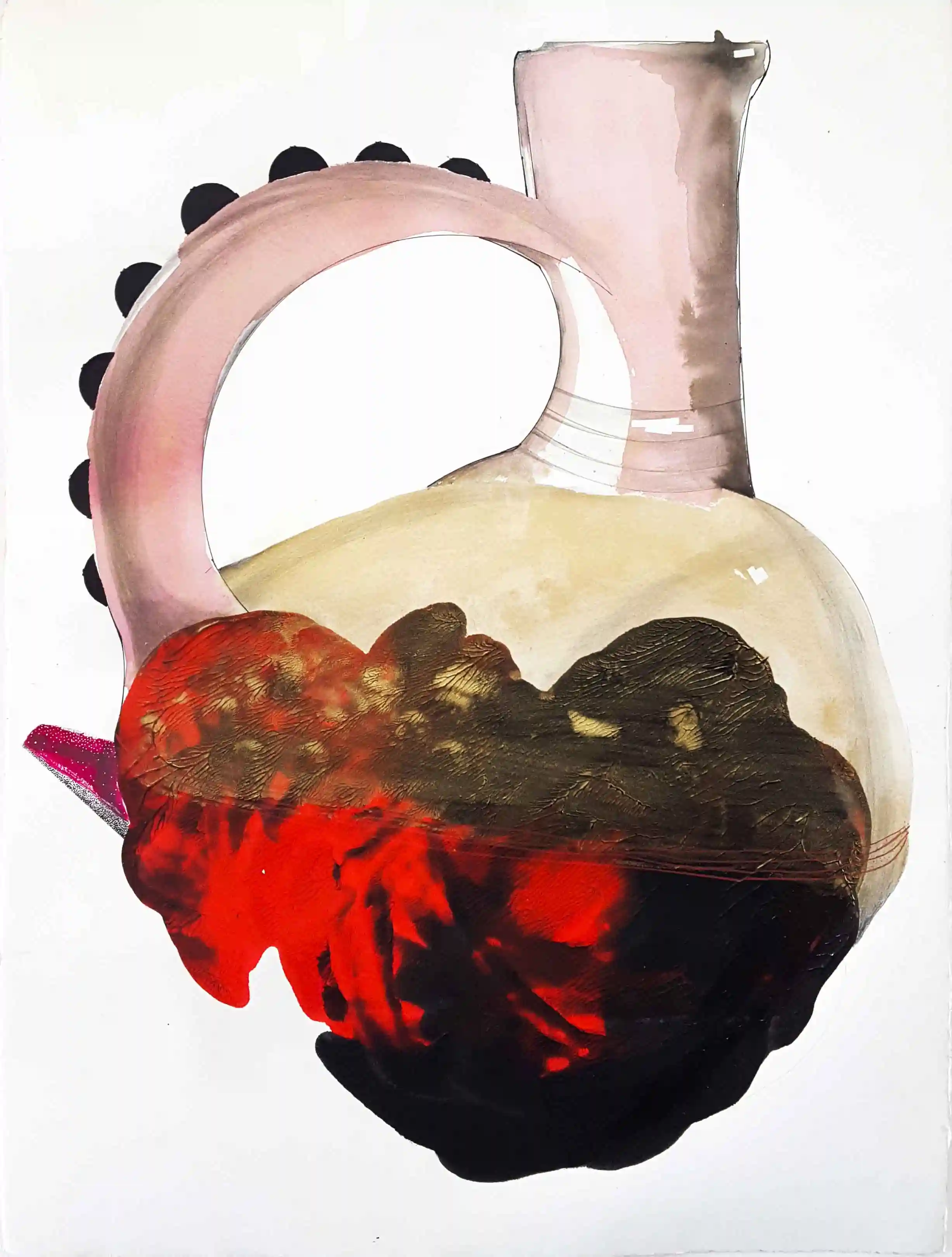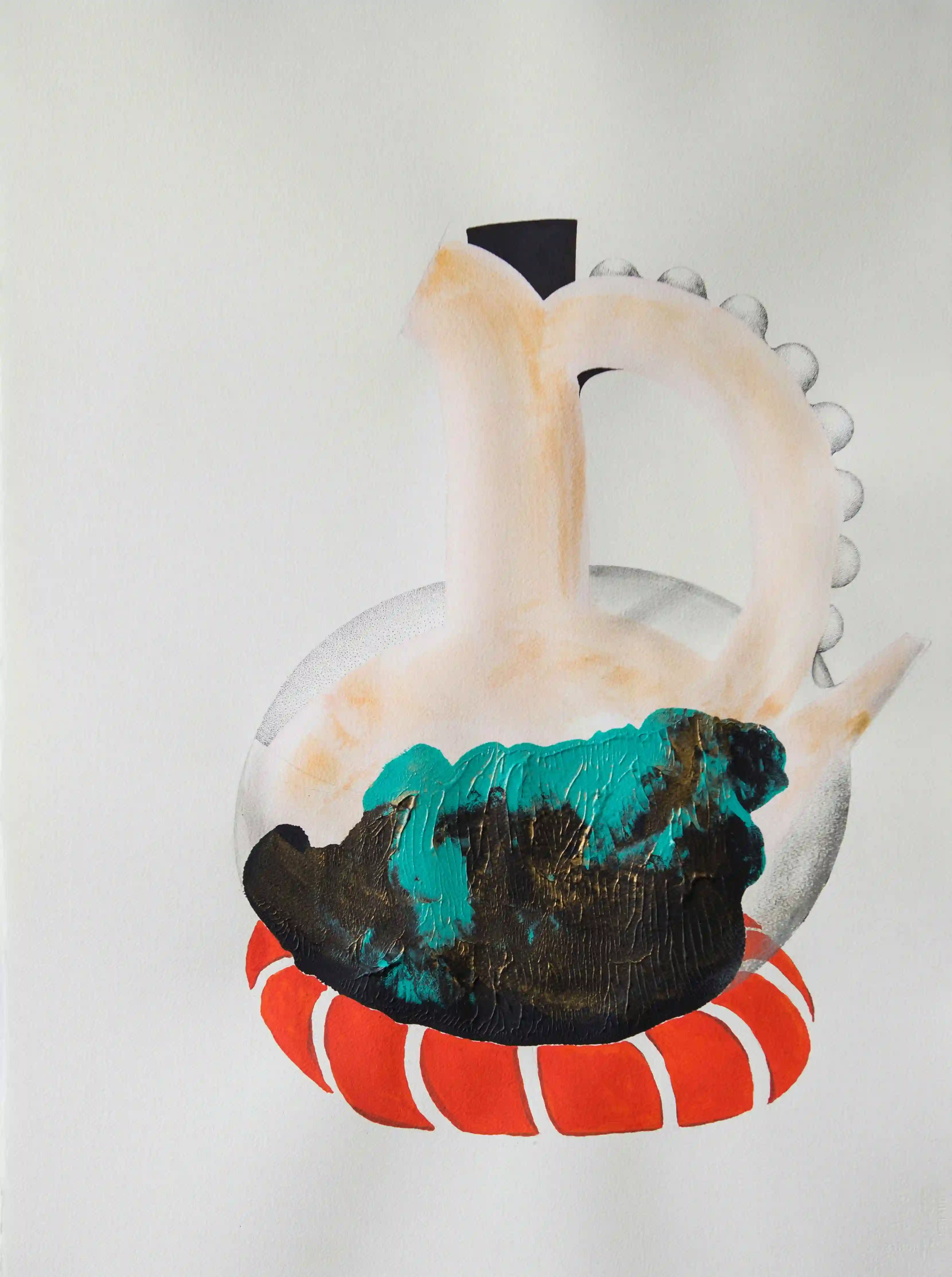 Jebenas examines the Ethiopian coffee ceremony as a living social and political ritual. Rooted in hospitality and dialogue, the ceremony provides a rare public space for conversation, sometimes even for political discourse. Through paintings, amulet publications, and ceramic works, I explore how these intimate gatherings sustain community and create a shared sense of belonging.