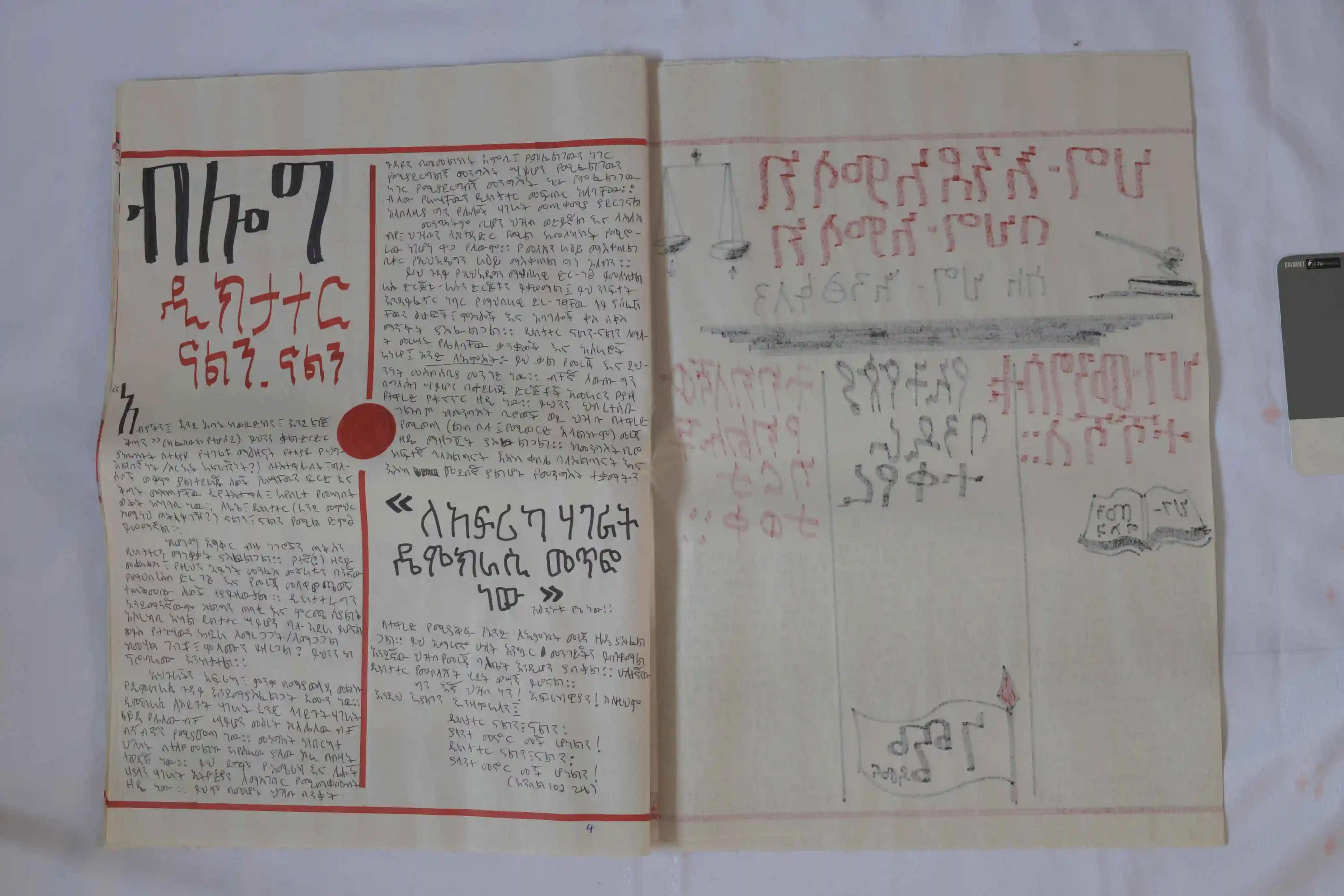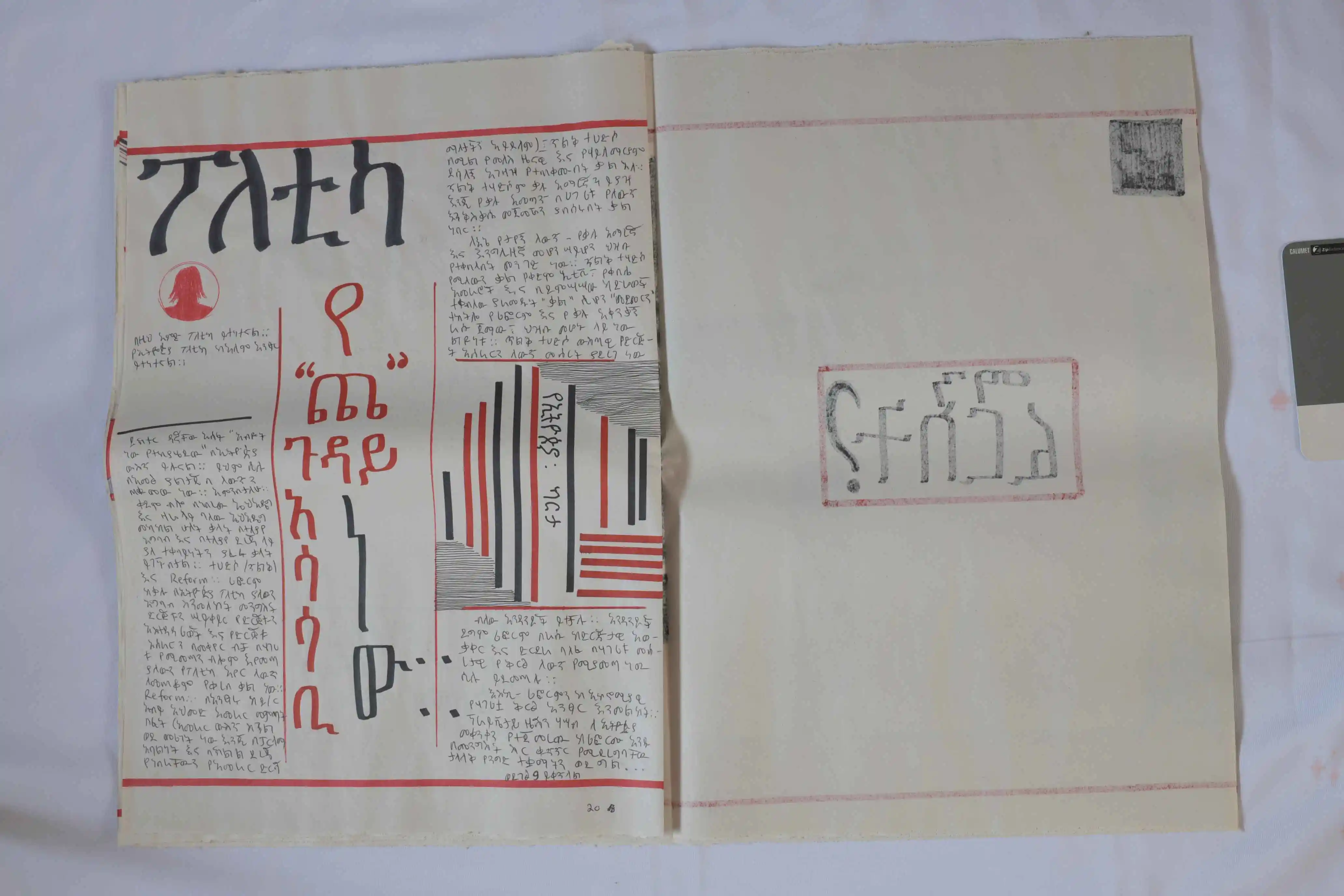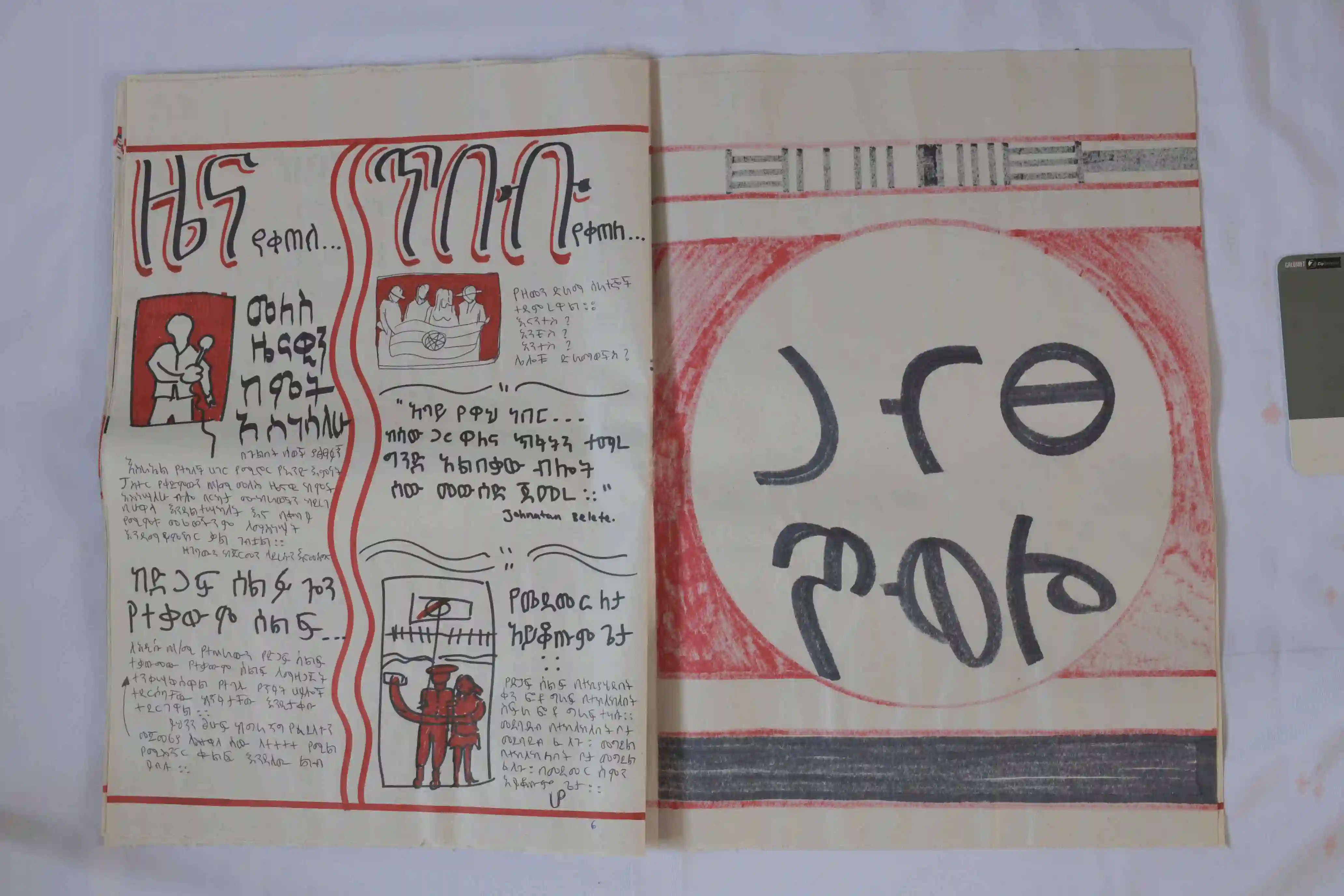 To expand its reach, artists Engdaye Lemma and Teimar Tegene produced 100 silk-screened copies of the newspaper. The issue stands as both artifact and intervention, marking a turning point in Ethiopian politics while reflecting on the role of art in shaping public memory.