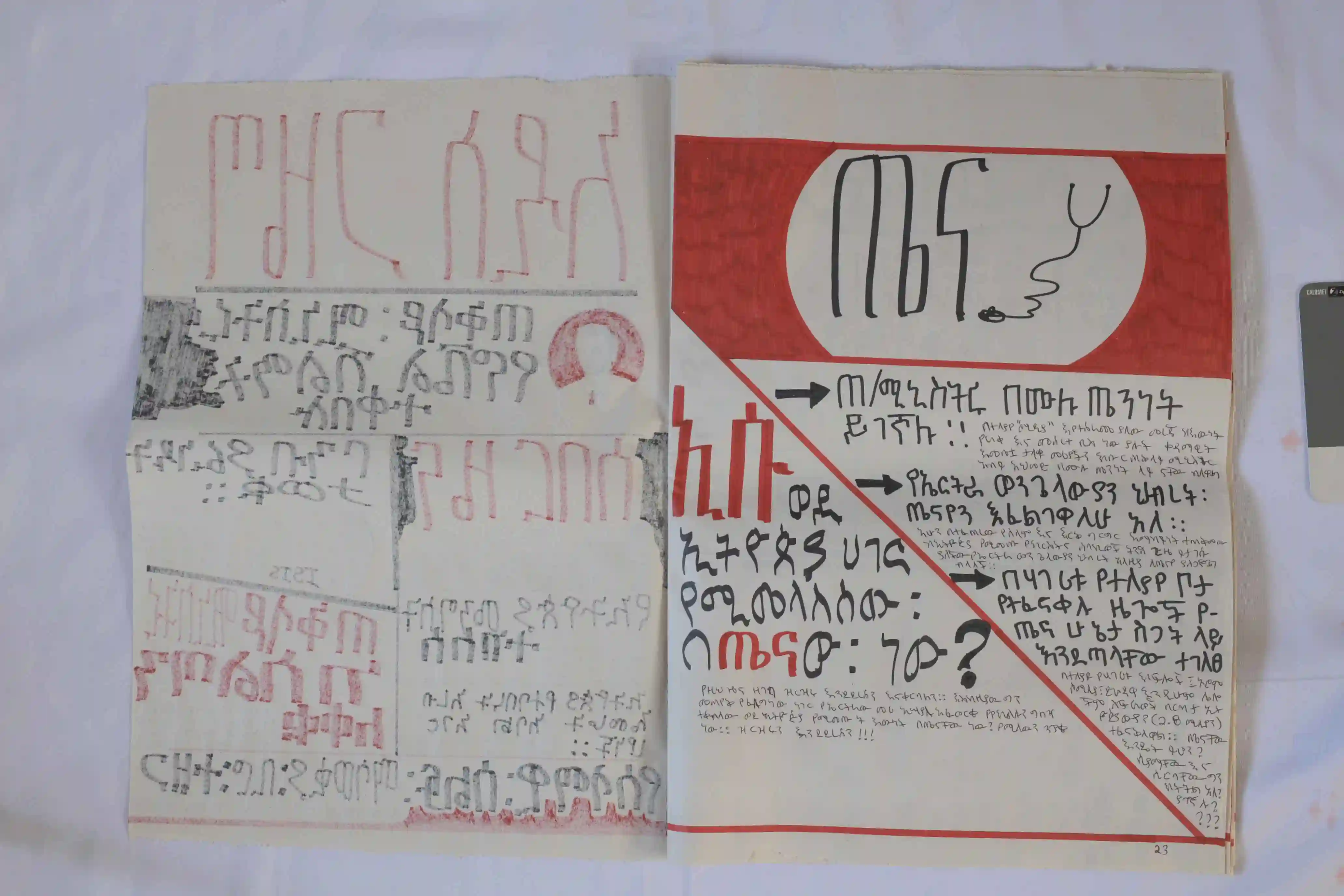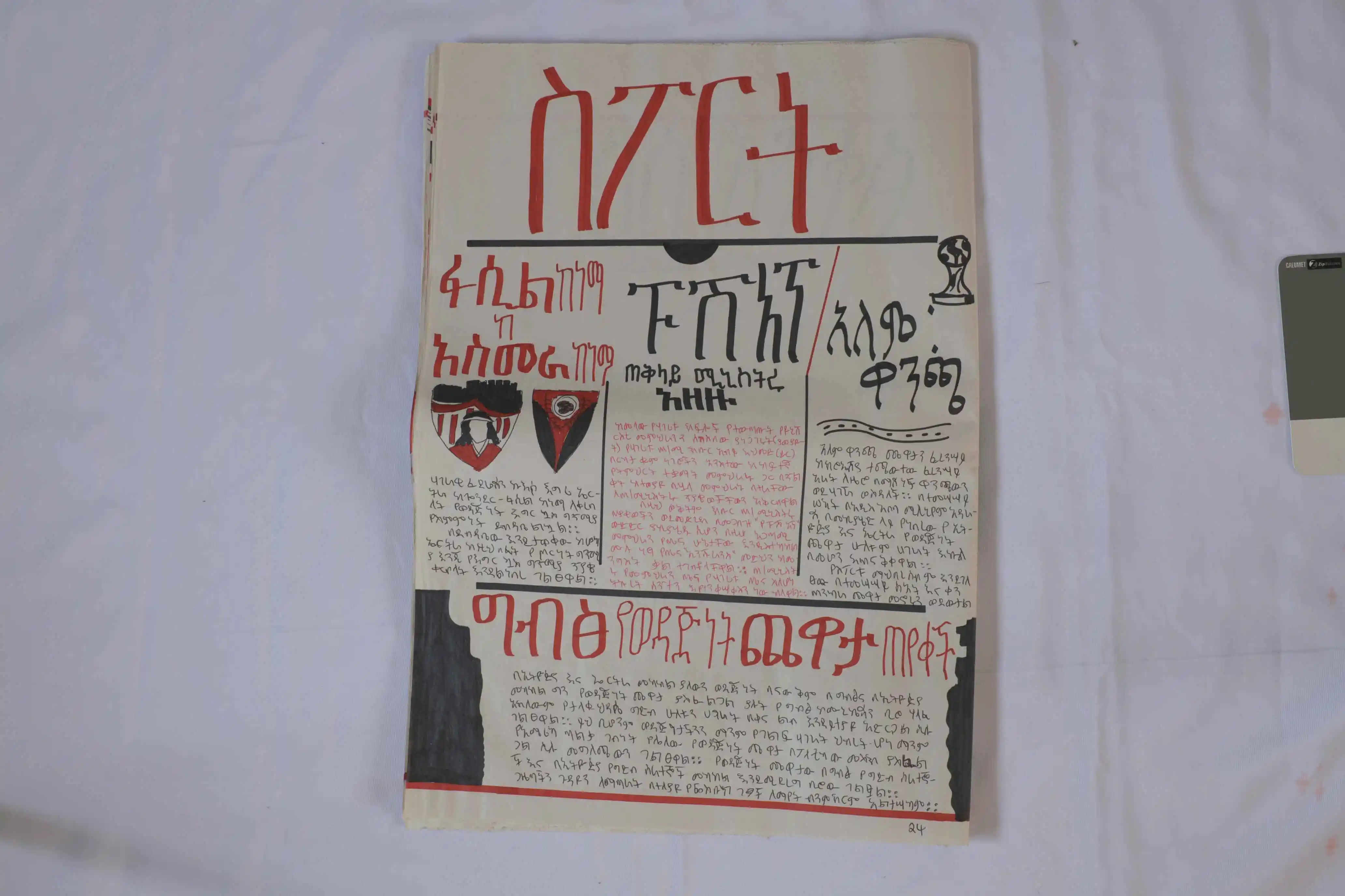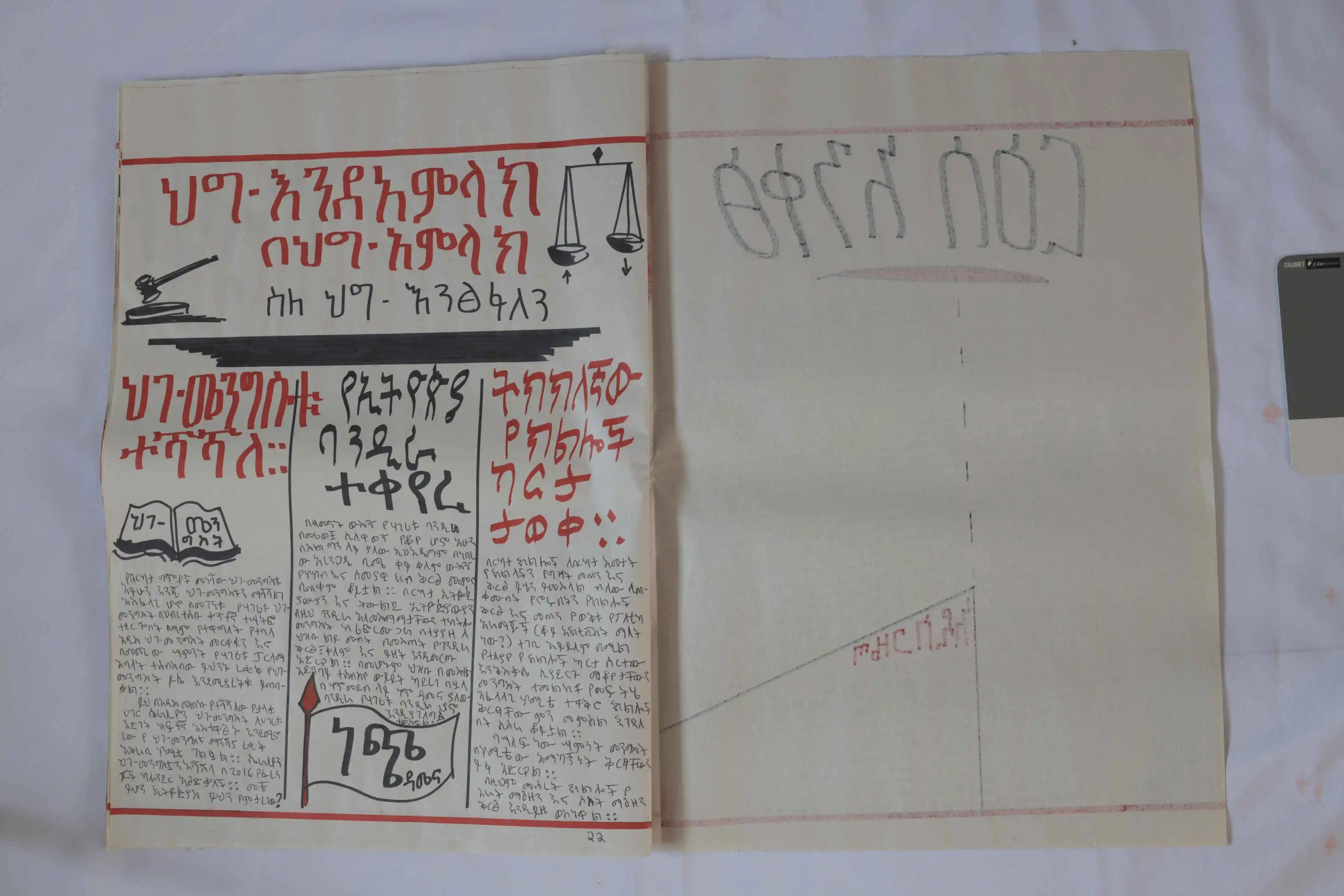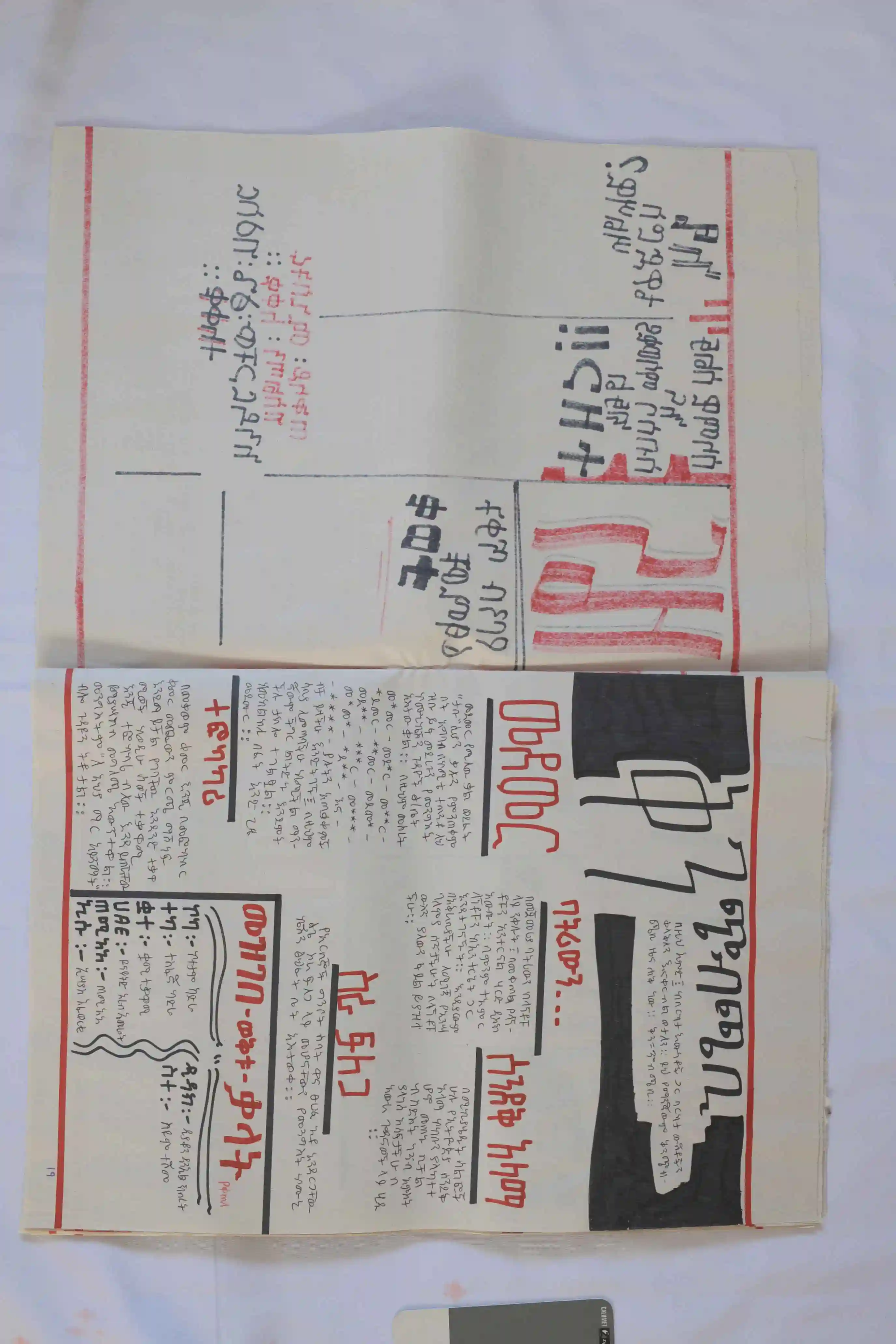 To expand its reach, artists Engdaye Lemma and Teimar Tegene produced 100 silk-screened copies of the newspaper. The issue stands as both artifact and intervention, marking a turning point in Ethiopian politics while reflecting on the role of art in shaping public memory.