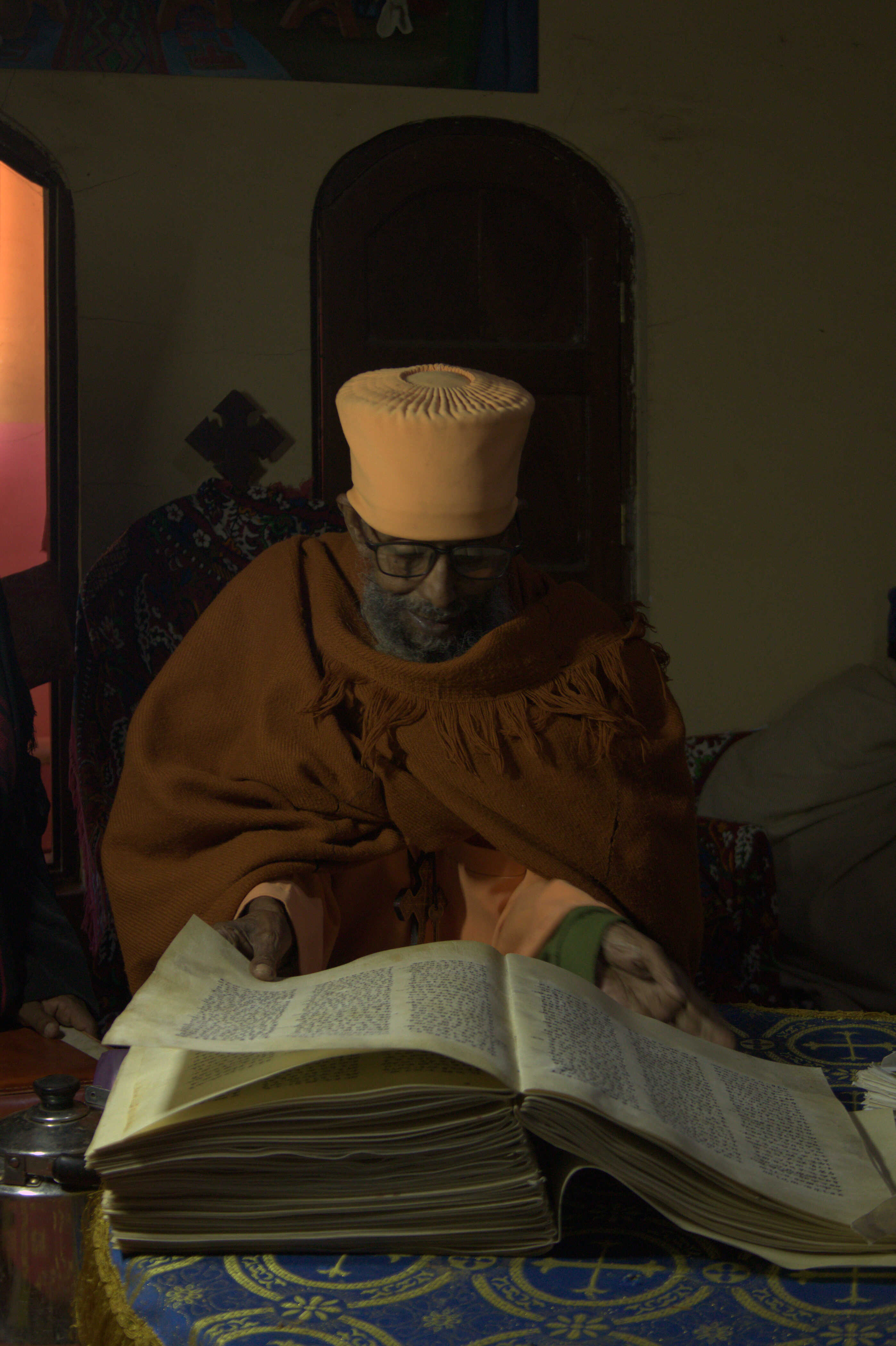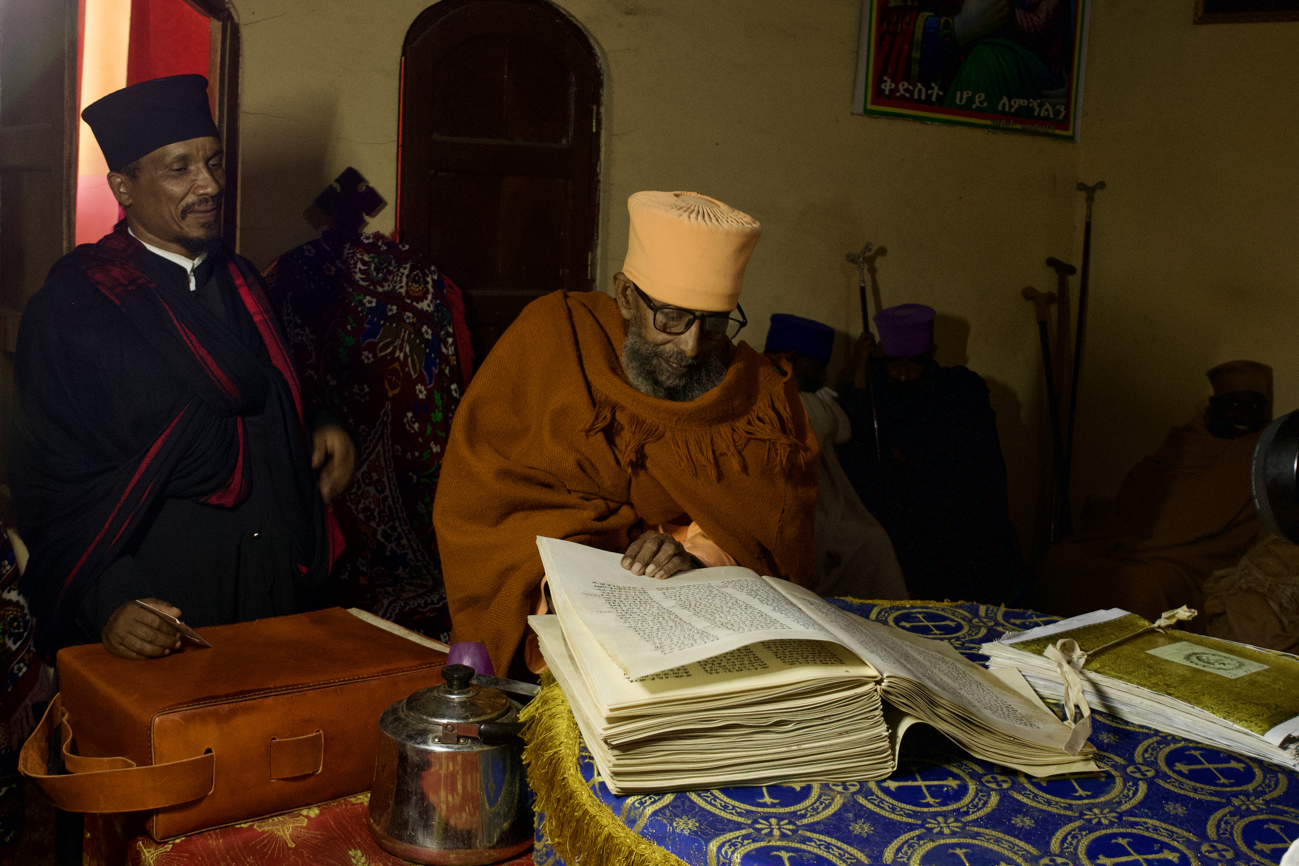 The Book of Enoch project reflects on the ethics of repatriation and the transmission of knowledge across geographies and histories. The project revisits the journey of the ancient Ethiopian manuscript, the Book of Enoch, which was taken from Ethiopia in the 18th century by the Scottish explorer James Bruce and is now held in collections such as the Bodleian Library and the British Library. Through a process of reactivation, the artist commissioned calligraphers and parchment makers from Motta, Gojam, to recreate the 300-page goatskin manuscript.